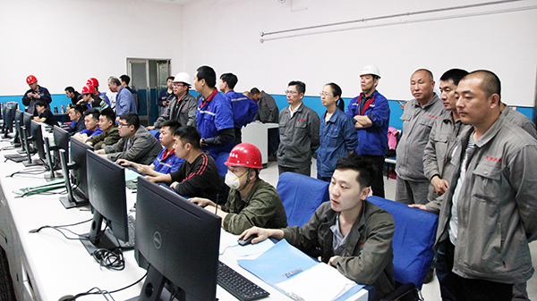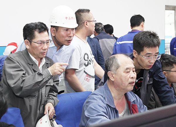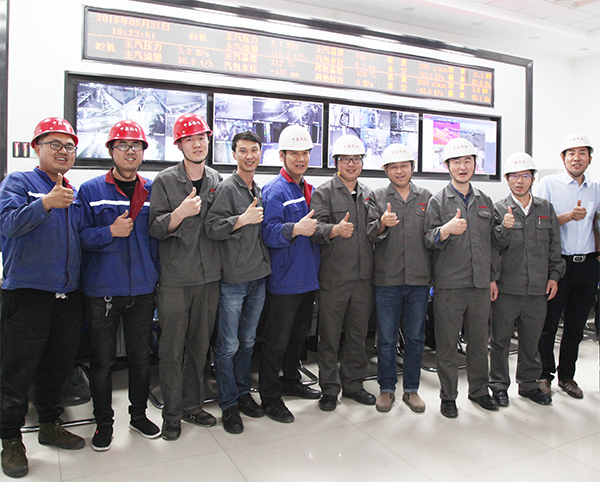 4萬機組一次并網(wǎng)成功后,集團(tuán)總工程師李成玉(右三)、項目建設(shè)部長胡林桂(右一)中鑫熱電總經(jīng)理韋毅民(右二)和副總經(jīng)理李樹彬(右四)同部分生產(chǎn)、技術(shù)管理骨干在中控室露出歡快的笑容!